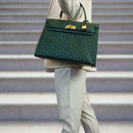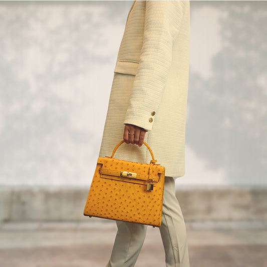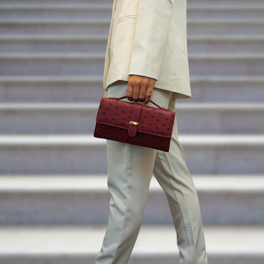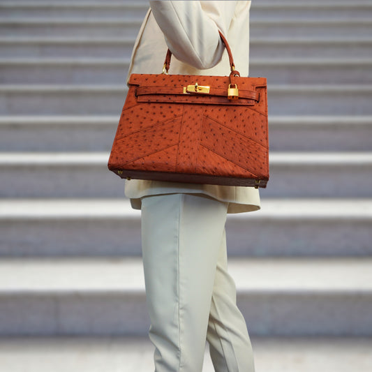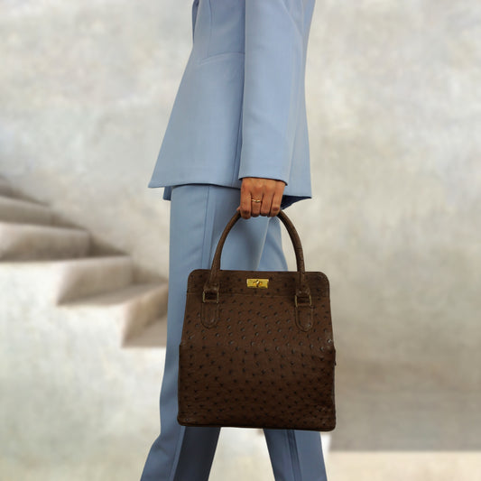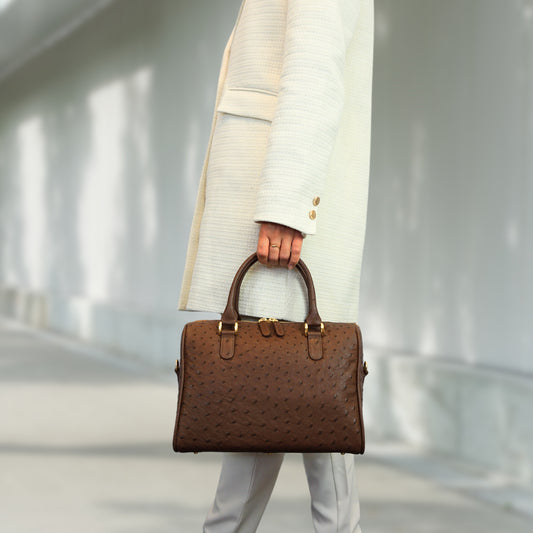 Handtasche "Die Raffinierte" aus Straußenleder in Braun