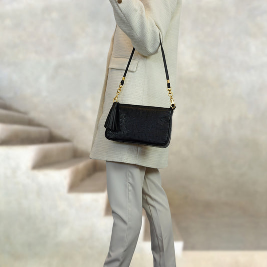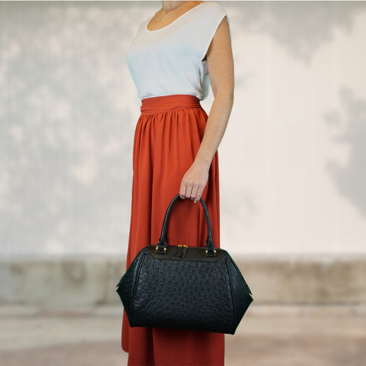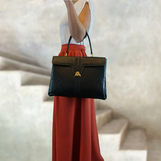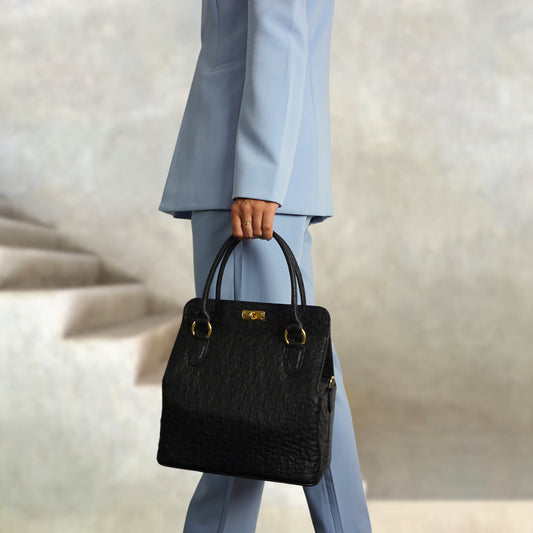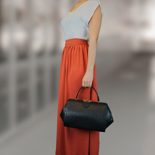 Handtasche "Die Raffinierte" aus Straußenleder in Schwarz