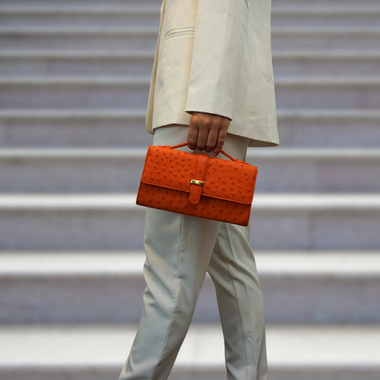 Handtasche "Die Clutch" in Orange mit goldfarbenen Details & Schulterriemen