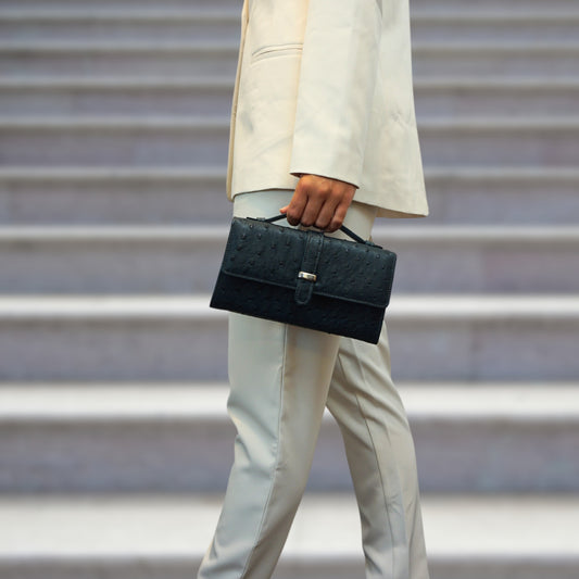 Geschäftstasche "Die Organisierte" aus Straußenleder in Schwarz