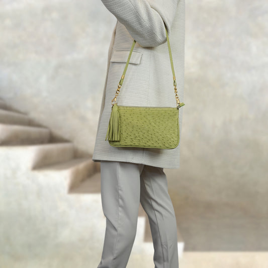 Handtasche "Pochette" in Hellgrün mit goldfarbenen Details