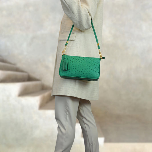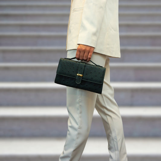 Handtasche "Pochette" in Smaragdgrün mit goldfarbenen Details