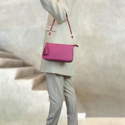 Ausverkauft - Schreiben Sie mir.Handtasche "Pochette" in Magenta-Pink mit goldfarbenen Details