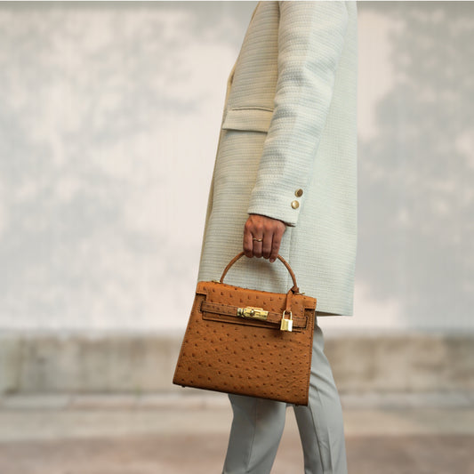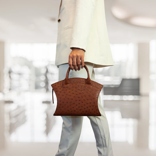 Henkeltasche "Die Elegante" in Cognac-Braun mit goldfarbenen Details