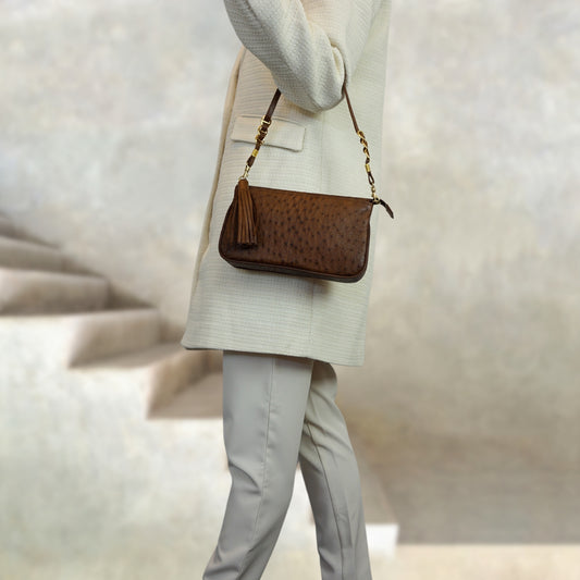 Handtasche "Die Clutch" in Dunkelbraun mit goldfarbenen Details & Schulterriemen