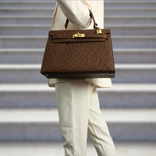 Handtasche "Die Klassische" in Braun mit goldfarbenen Details in L