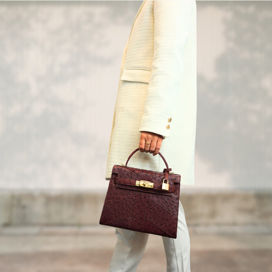 Handtasche "Die Klassische" in dunklem Chestnut mit goldfarbenen Details in S