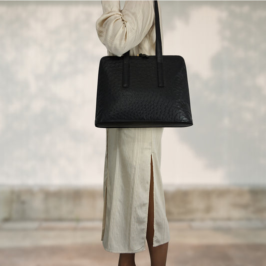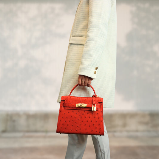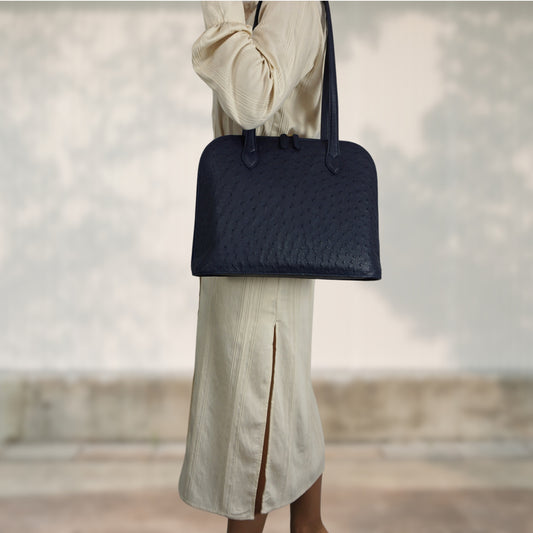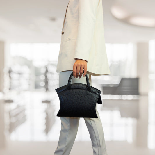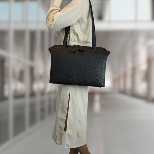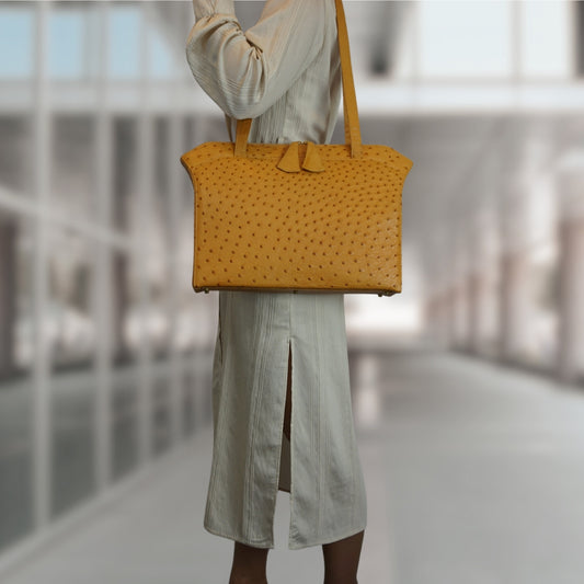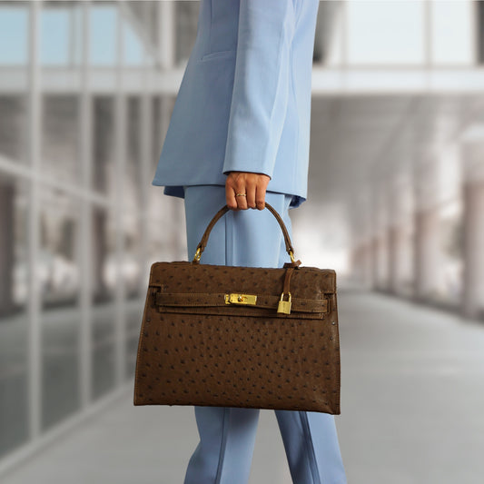 Handtasche "Die Geräumige" aus Straußenleder in Braun