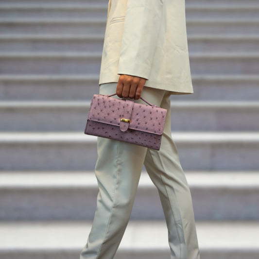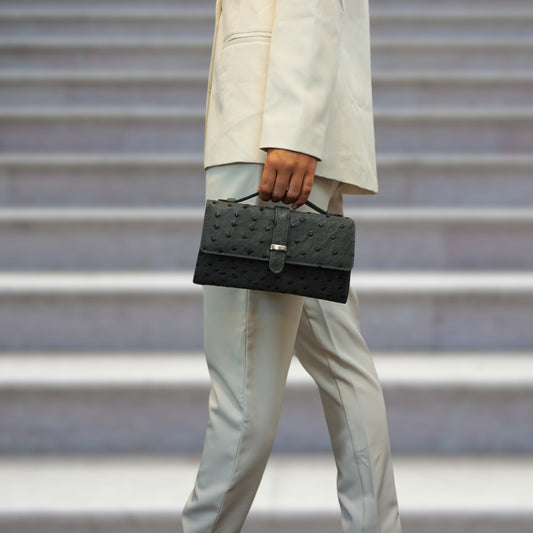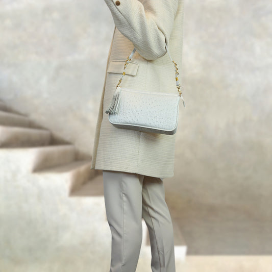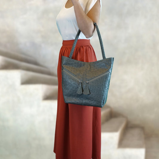 Handtasche "Die Verlässliche" aus Straußenleder in Grau