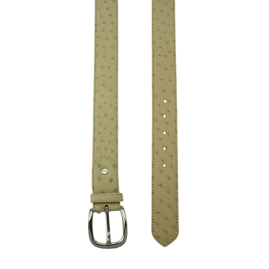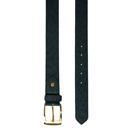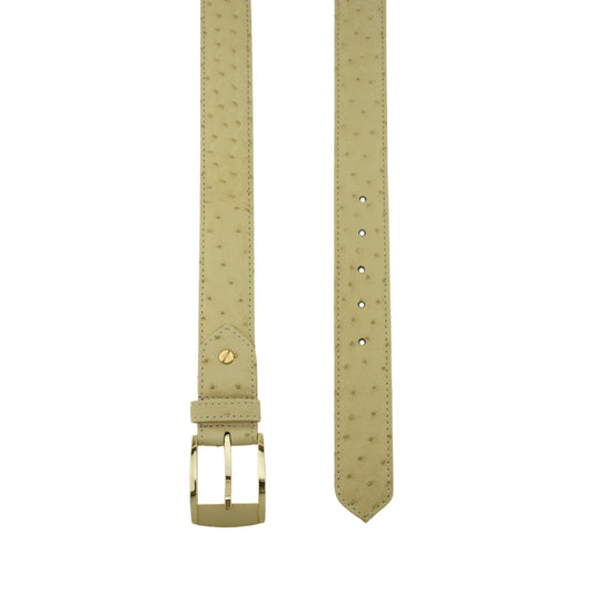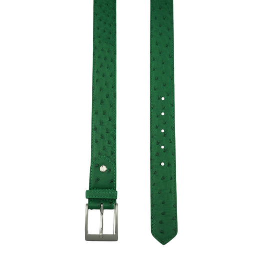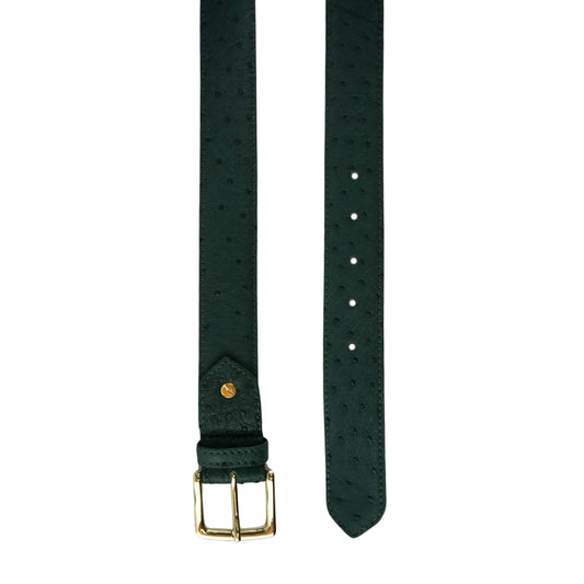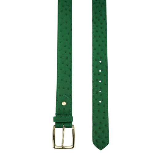 Ostrich leather belt in Cyprus green with gold buckle, custom made