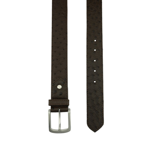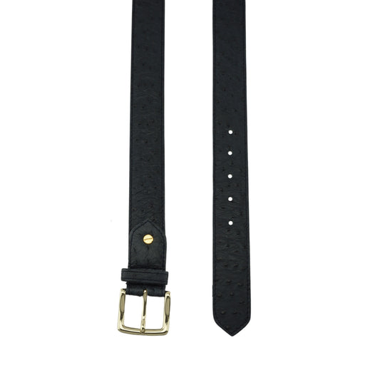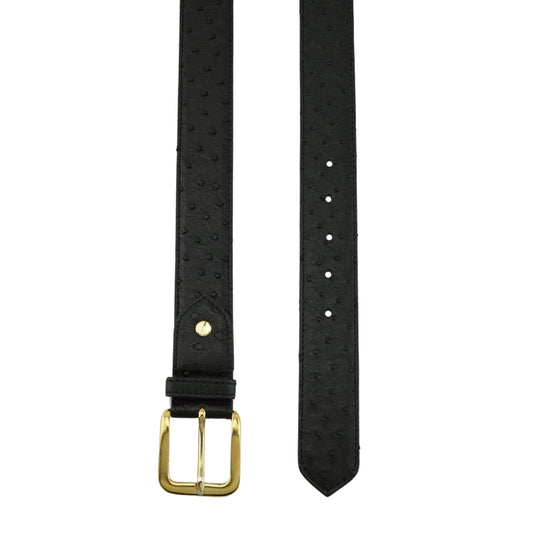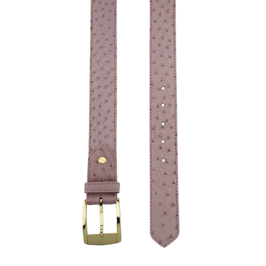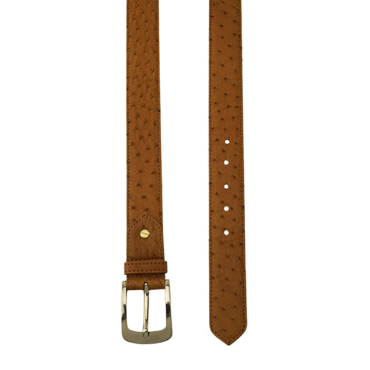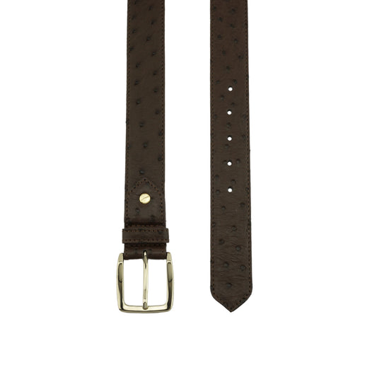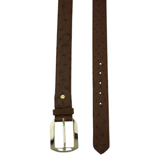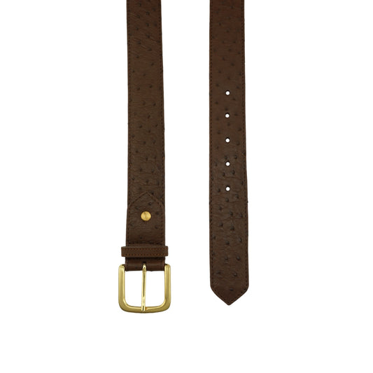 Ostrich leather belt in chestnut with gold buckle, custom made