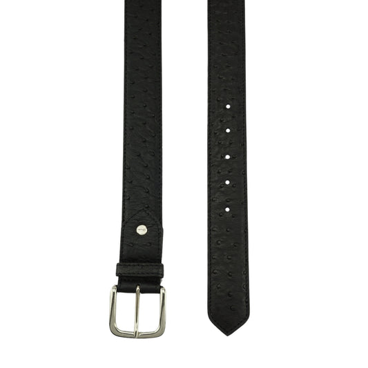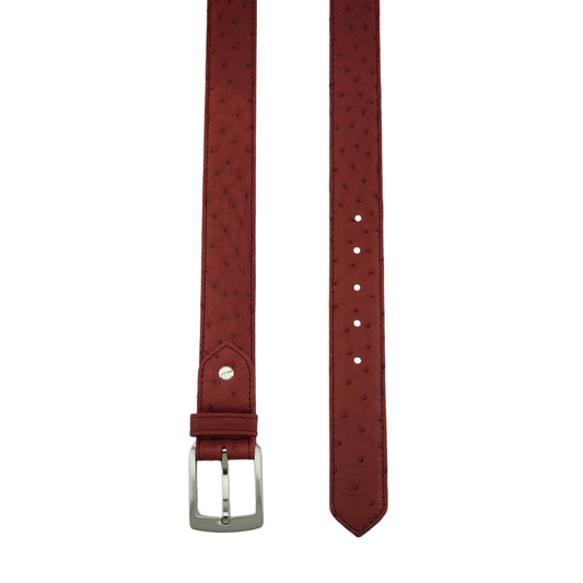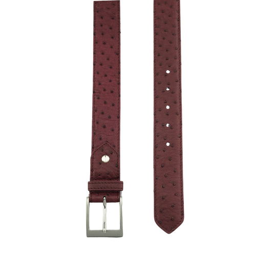 Bordeaux red ostrich leather belt with silver buckle, custom made