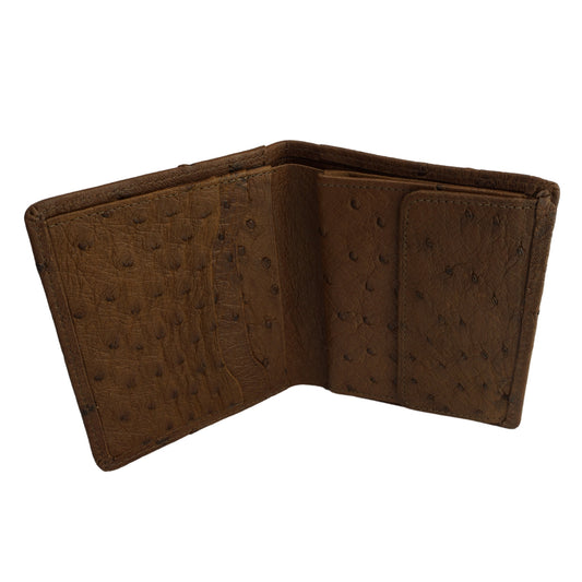 Ostrich leather belt in chestnut with gold buckle, custom made